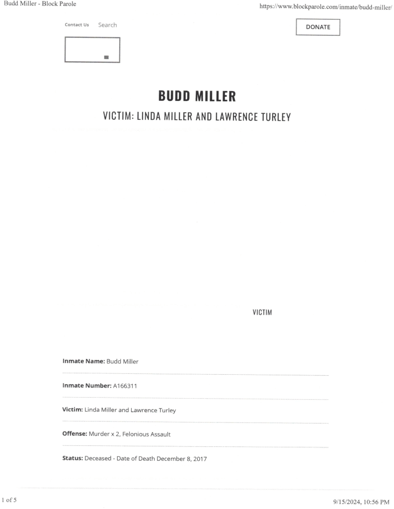 Budd Miller Victim: Linda Miller and Lawrence Turley